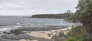 I parked the car at Dolphin Point on a day of light showers and walked own to Potholes Beach in Meroo National Park.